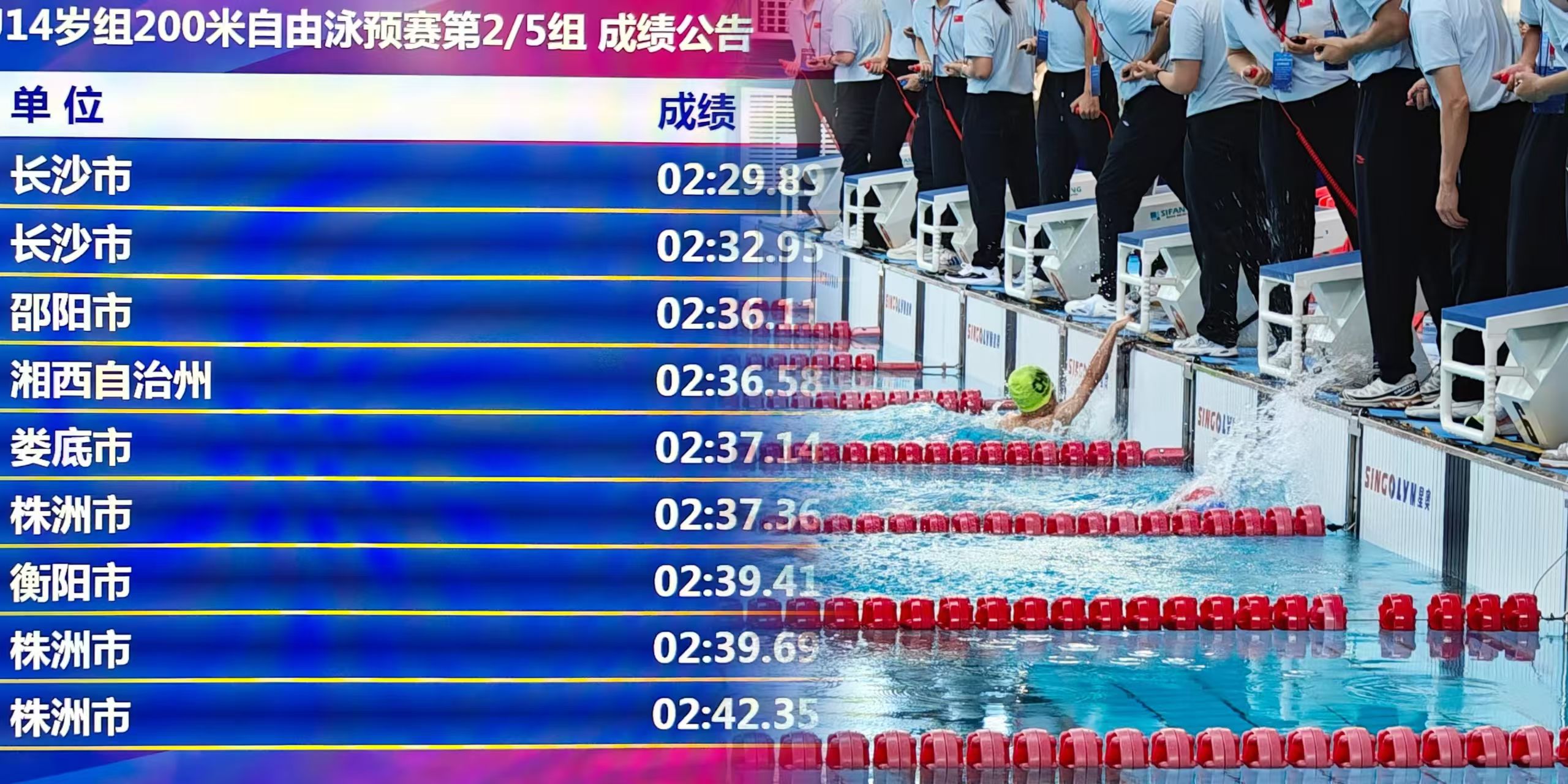 北京星奧科技股份有限公司作為本屆錦標(biāo)賽的技術(shù)支持單位,將提供"星奧云"體育賽事服務(wù)平臺(tái)及自主研發(fā)的專(zhuān)業(yè)游泳計(jì)時(shí)記分系統(tǒng),為賽事提供高效穩(wěn)定的技術(shù)保障。值得注意的是,在今年6月湖南省青少年游泳錦標(biāo)賽達(dá)標(biāo)賽中使用的正是該套系統(tǒng)設(shè)備,該系統(tǒng)能夠?qū)崟r(shí)精準(zhǔn)采集運(yùn)動(dòng)員自入水起的核心競(jìng)技指標(biāo),包括出發(fā)反應(yīng)時(shí)間、分段成績(jī)與終點(diǎn)成績(jī),并對(duì)海量數(shù)據(jù)進(jìn)行即時(shí)計(jì)算處理,處理結(jié)果通過(guò)場(chǎng)地顯示屏直觀展示,確?,F(xiàn)場(chǎng)觀眾第一時(shí)間掌握賽事實(shí)況信息。