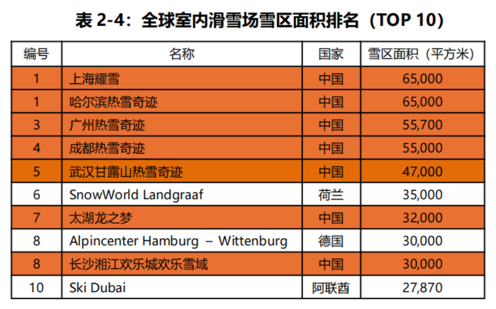 在國際對(duì)比中,中國已成為室內(nèi)滑雪場的絕對(duì)領(lǐng)跑者。全球雪區(qū)面積排名前十的室內(nèi)滑雪場中,中國占據(jù)七席,且前五名全部位于國內(nèi),其中上海耀雪、哈爾濱熱雪奇跡面積最大,超過6萬m²。隨著深圳、長春等新項(xiàng)目的投入運(yùn)營,中國在室內(nèi)滑雪場全球前十中的占比預(yù)計(jì)將達(dá)到九席。