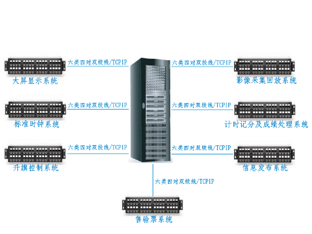 具有多種通信接口和支持多種通信協(xié)議,能方便、靈活地接入不同廠商、不同接口的系統(tǒng)和設(shè)備。可以將場(chǎng)館中具有開放接口的系統(tǒng)和設(shè)備直接集成到體育場(chǎng)館比賽設(shè)備集成系統(tǒng)中
